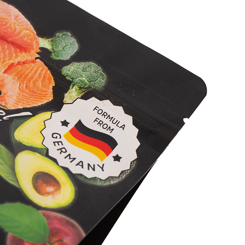 La abertura de la bolsa está equipada con una cremallera sellada ensanchada, que se puede tirar y cerrar suavemente sin atascarse, un tirón suave puede sellarla herméticamente, por lo que no hay necesidad de preocuparse de que la comida para perros se humedezca o se escape.
